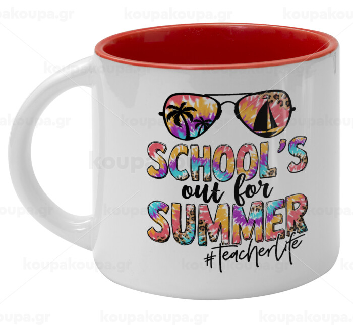 School's Out For Summer Teacher Life, Κούπα κεραμική 400ml Λευκή/Κόκκινη