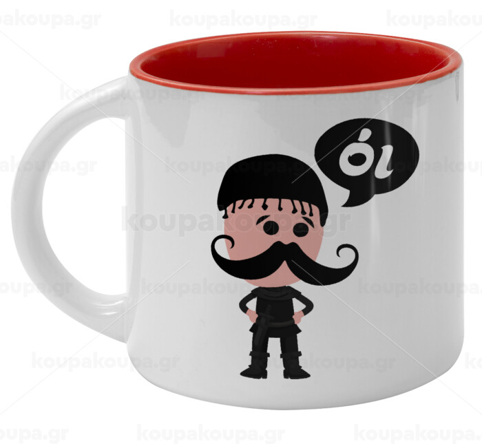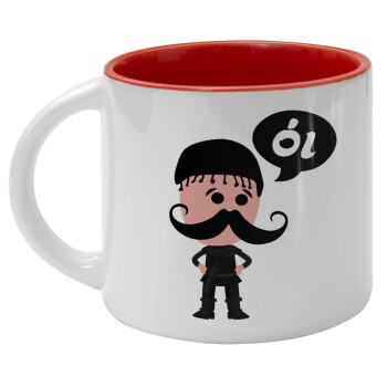 Κρητικός "Οι", Κούπα κεραμική 400ml Λευκή/Κόκκινη