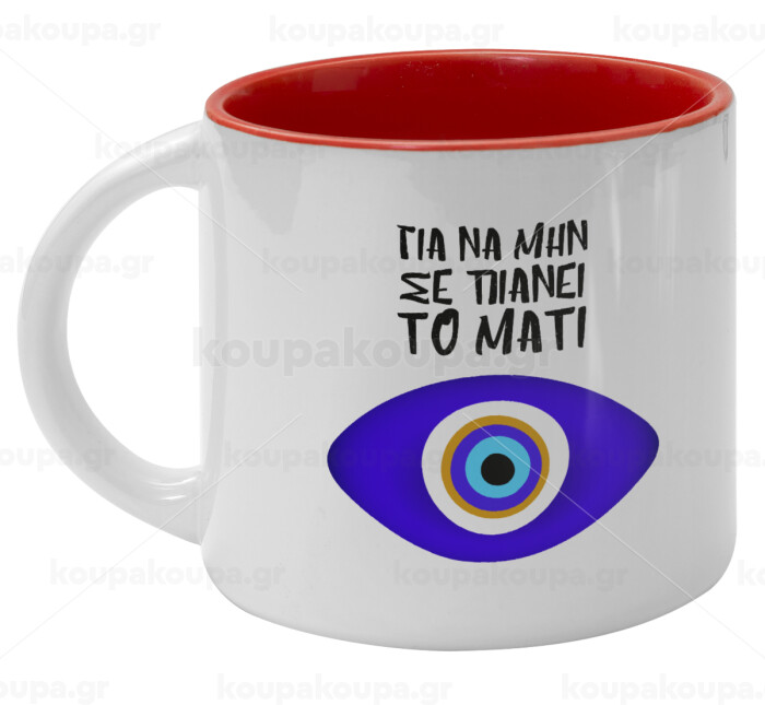 Για να μην σε πιάνει το μάτι, Κούπα κεραμική 400ml Λευκή/Κόκκινη