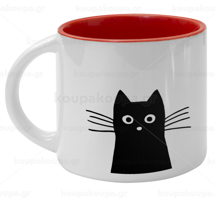 Black Cat, Κούπα κεραμική 400ml Λευκή/Κόκκινη