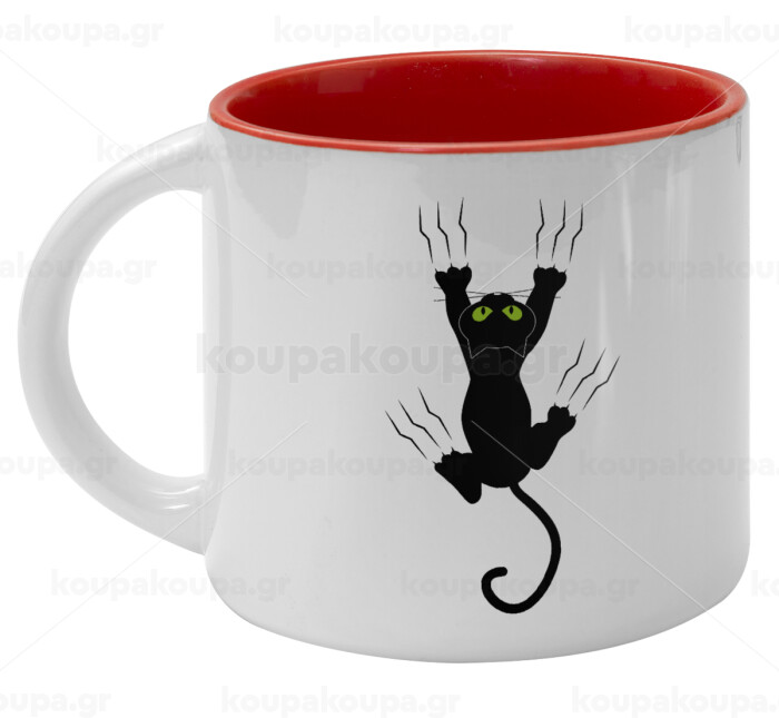 cat grabbing, Κούπα κεραμική 400ml Λευκή/Κόκκινη