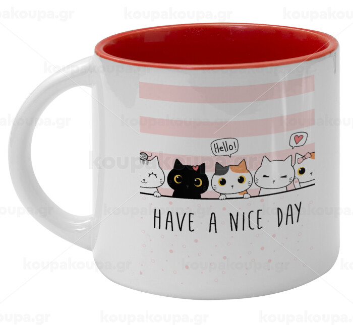 Have a nice day cats, Κούπα κεραμική 400ml Λευκή/Κόκκινη