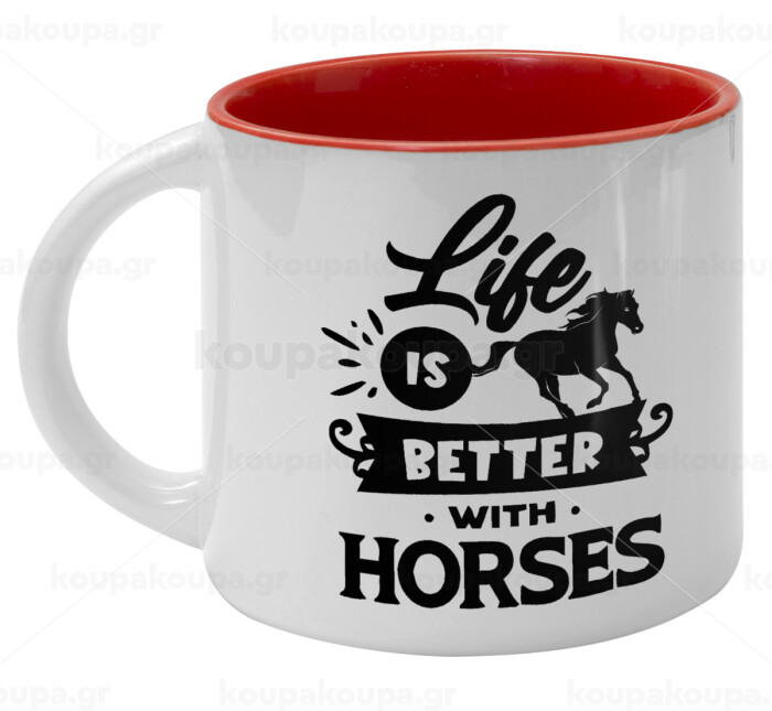 Life is Better with a Horses, Κούπα κεραμική 400ml Λευκή/Κόκκινη