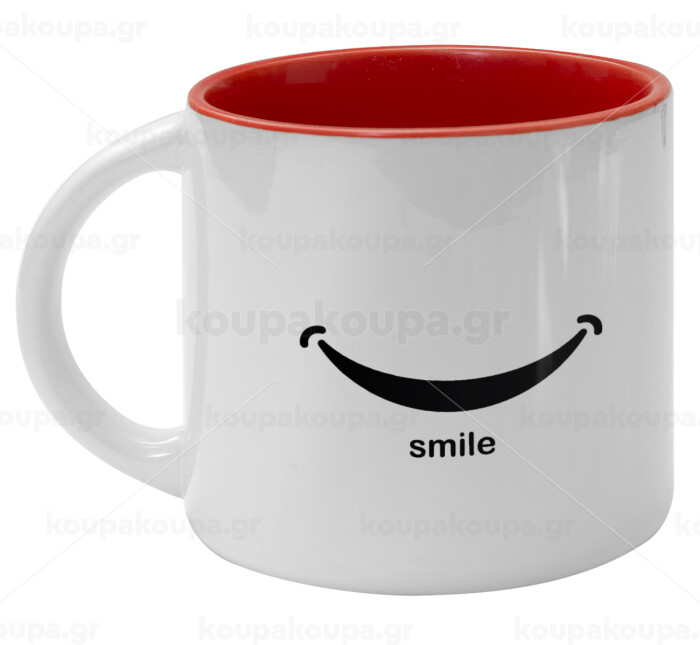 Smile!!!, Κούπα κεραμική 400ml Λευκή/Κόκκινη