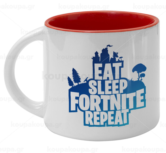 Eat Sleep Fortnite Repeat, Κούπα κεραμική 400ml Λευκή/Κόκκινη