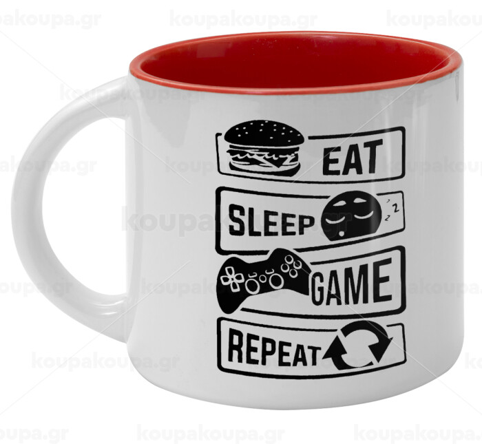 Eat Sleep Game Repeat, Κούπα κεραμική 400ml Λευκή/Κόκκινη