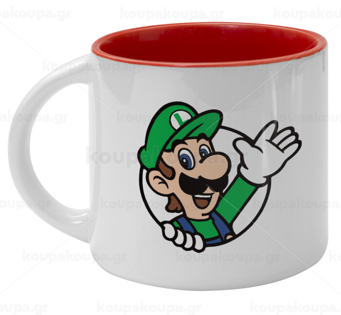 Super mario Luigi win, Κούπα κεραμική 400ml Λευκή/Κόκκινη