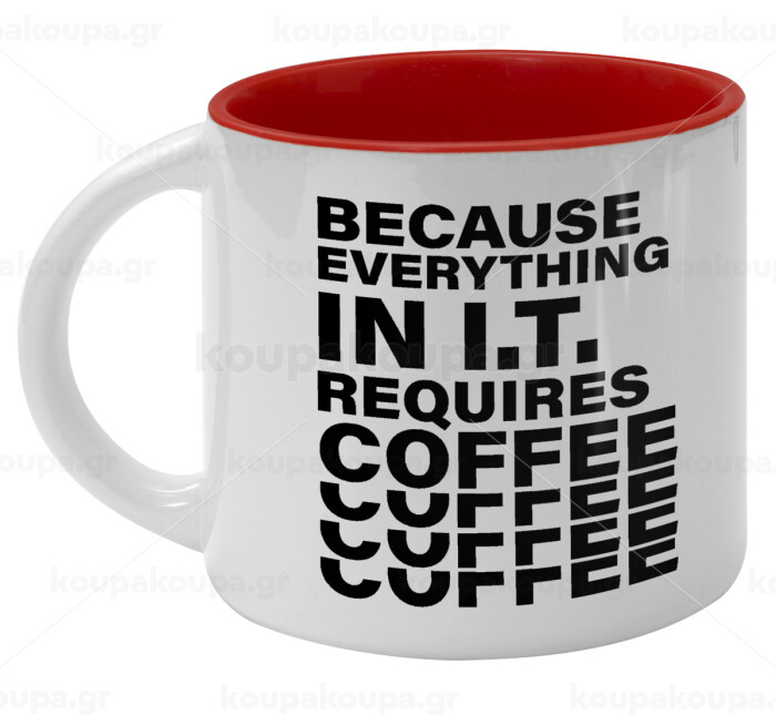 Because everything in I.T. requires coffee, Κούπα κεραμική 400ml Λευκή/Κόκκινη