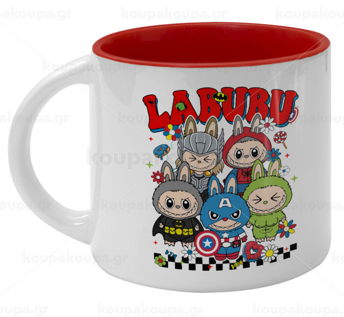Labubu superheroes, Κούπα κεραμική 400ml Λευκή/Κόκκινη