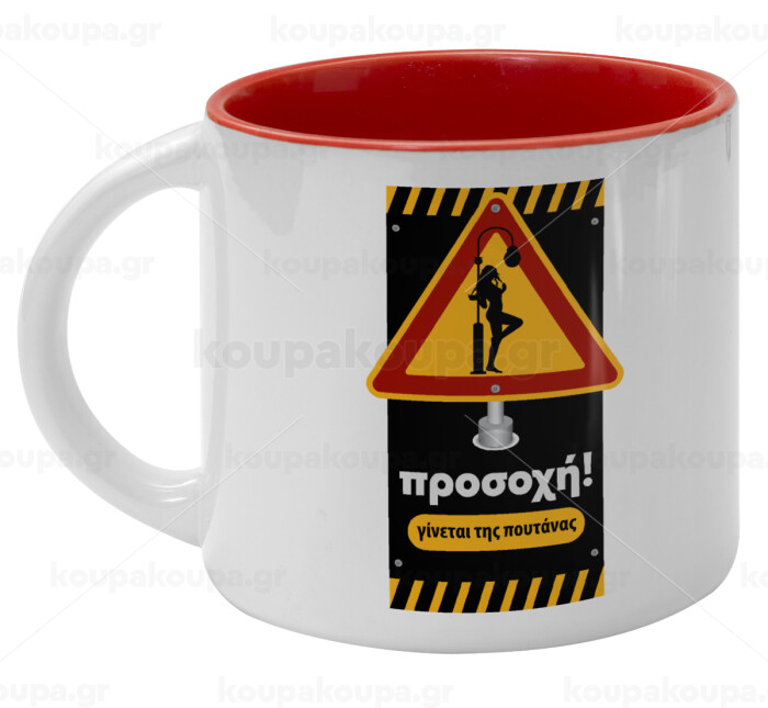 Προσοχή Γίνεται της πουτ.νας, Κούπα κεραμική 400ml Λευκή/Κόκκινη