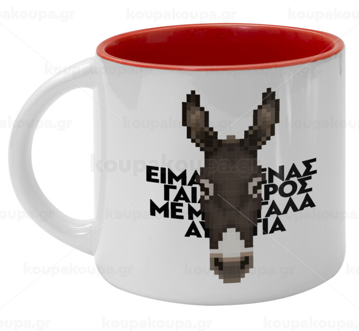 Είμαι ένας γάιδαρος με μεγάλα αυτιά., Κούπα κεραμική 400ml Λευκή/Κόκκινη