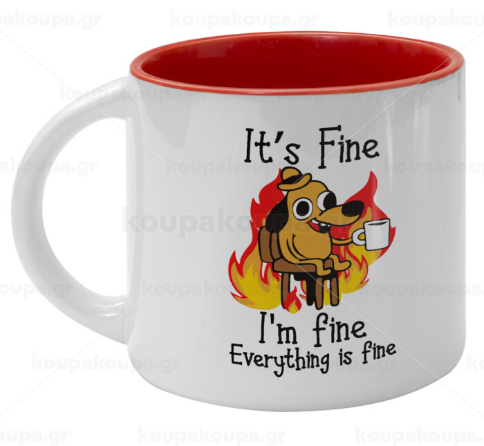 It's Fine I'm Fine Everything Is Fine, Κούπα κεραμική 400ml Λευκή/Κόκκινη
