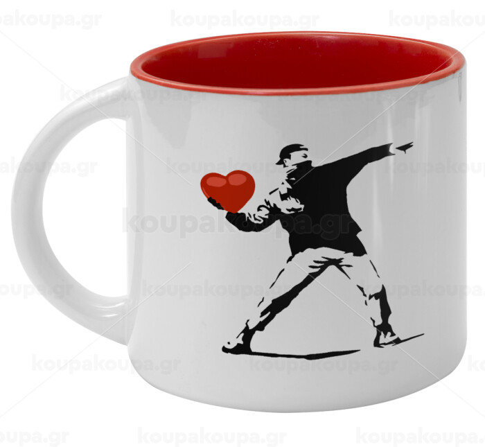 Banksy (The heart thrower), Κούπα κεραμική 400ml Λευκή/Κόκκινη