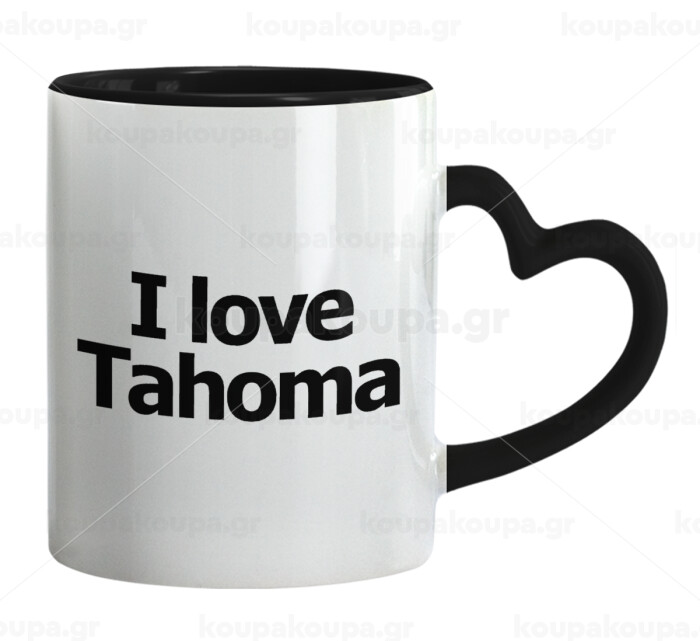 I love Tahoma, Mug heart black handle, ceramic, 330ml