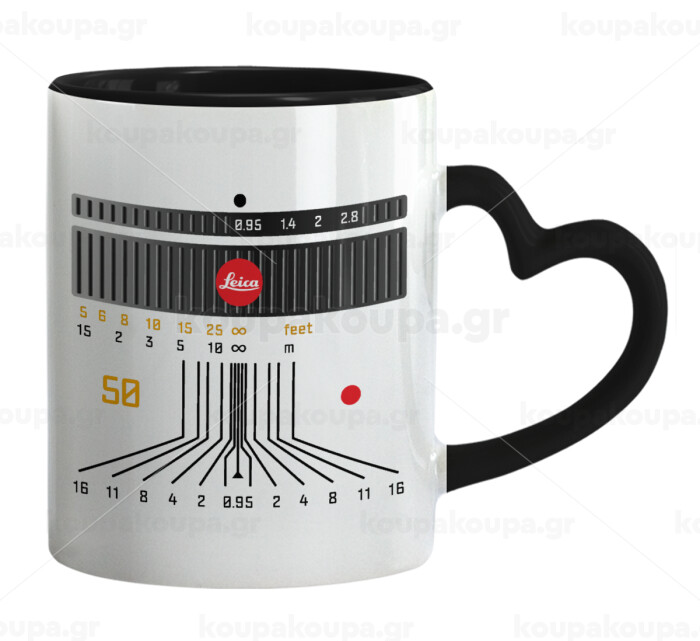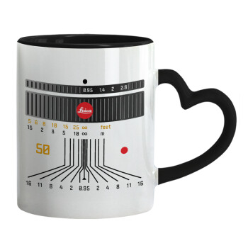 Leica Lens, Mug heart black handle, ceramic, 330ml