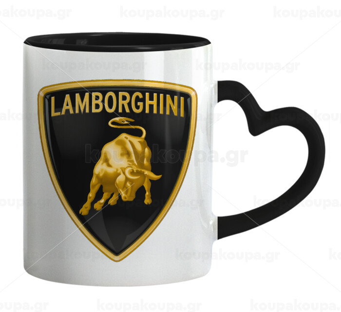 Lamborghini, Mug heart black handle, ceramic, 330ml