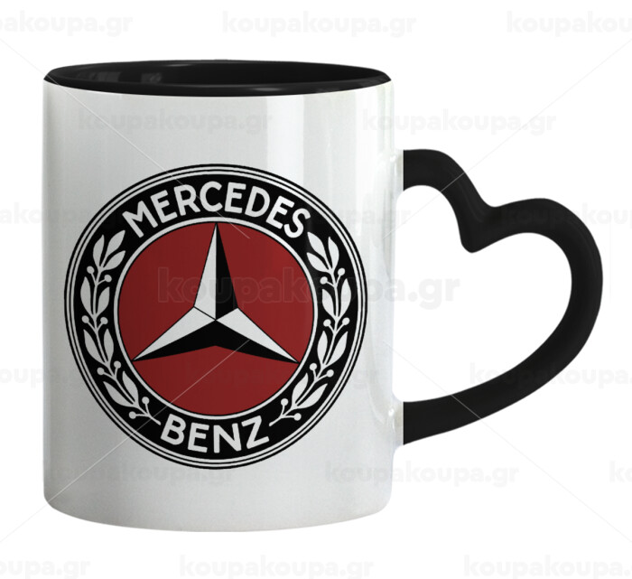 Mercedes vintage, Mug heart black handle, ceramic, 330ml
