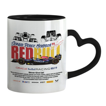 Sergio Perez - F1 Red Bull Racing, Mug heart black handle, ceramic, 330ml