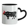 Diagrams for butcher shop, Mug heart black handle, ceramic, 330ml
