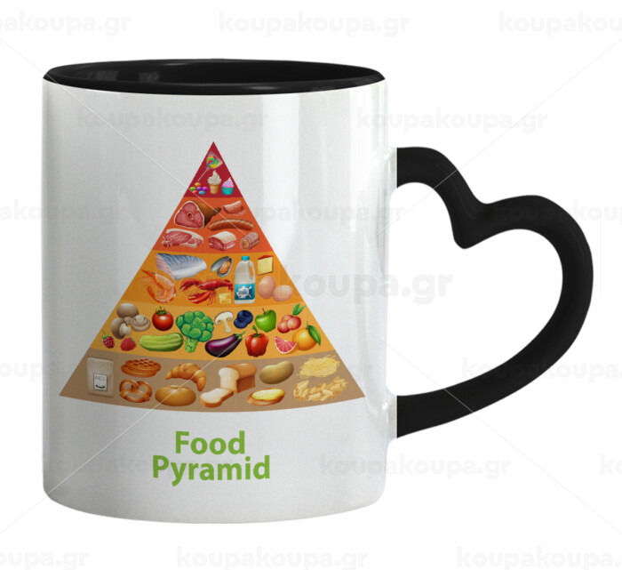 Food pyramid chart, Mug heart black handle, ceramic, 330ml