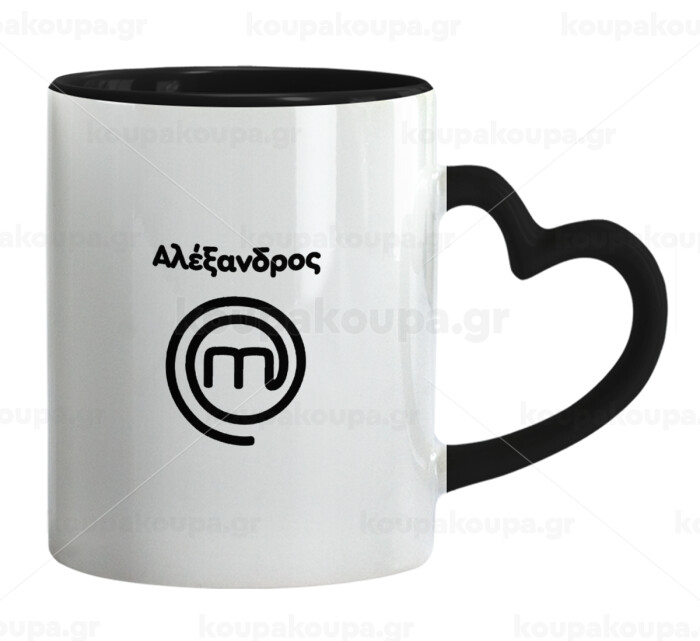 Master Chef Greece, Mug heart black handle, ceramic, 330ml