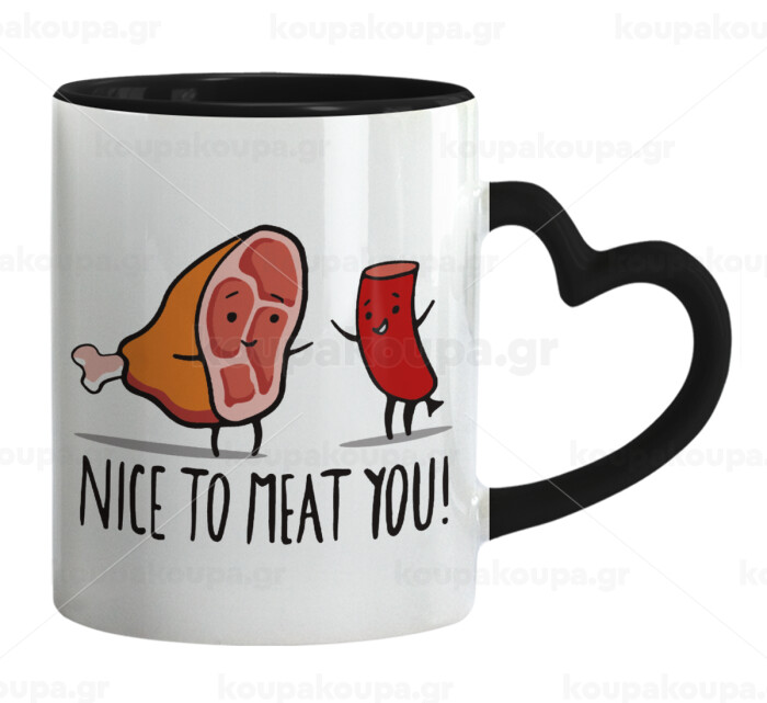 Nice to MEAT you, Mug heart black handle, ceramic, 330ml
