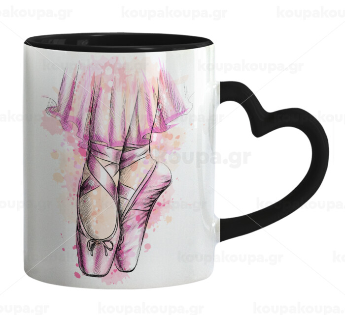 Ballerina shoes, Mug heart black handle, ceramic, 330ml