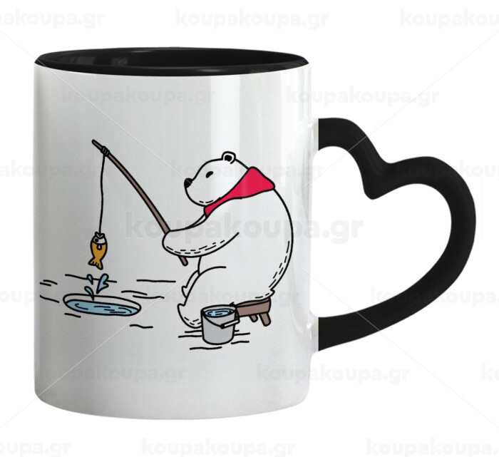 Bear fishing, Mug heart black handle, ceramic, 330ml