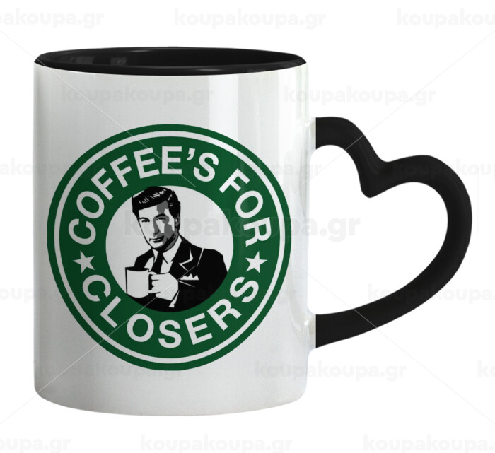 Coffee's for closers, Mug heart black handle, ceramic, 330ml