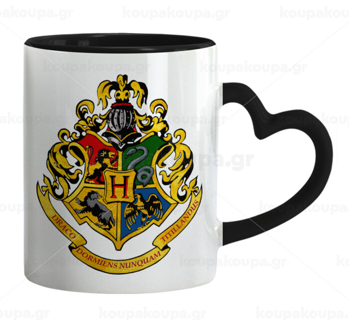 Hogwart's, Mug heart black handle, ceramic, 330ml