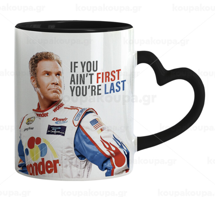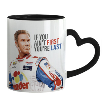 If You Ain't First You're Last Ricky Bobby, Talladega Nights, Mug heart black handle, ceramic, 330ml