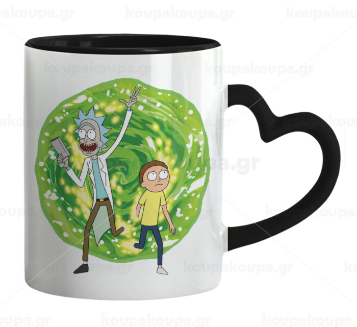 Rick and Morty, Mug heart black handle, ceramic, 330ml
