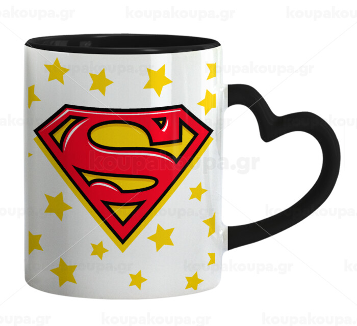 Superman Blue, Mug heart black handle, ceramic, 330ml