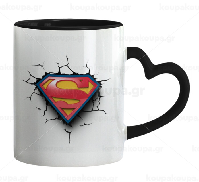 Superman cracked, Mug heart black handle, ceramic, 330ml