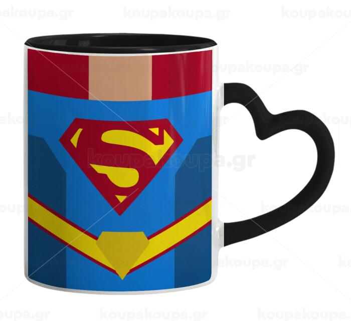 Superman flat, Mug heart black handle, ceramic, 330ml