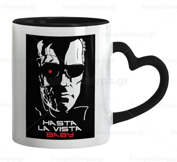 Terminator Hasta La Vista, Mug heart black handle, ceramic, 330ml