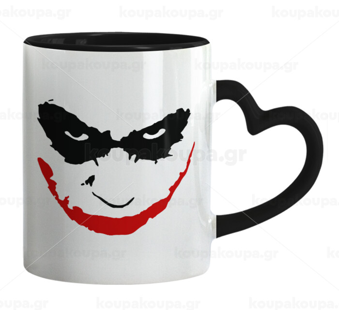 The joker smile, Mug heart black handle, ceramic, 330ml