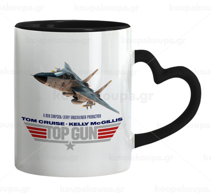 Top Gun, Mug heart black handle, ceramic, 330ml