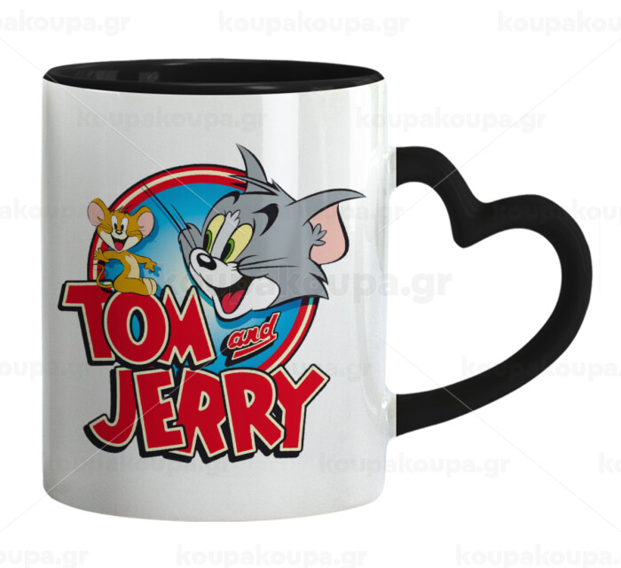 Tom and Jerry, Mug heart black handle, ceramic, 330ml
