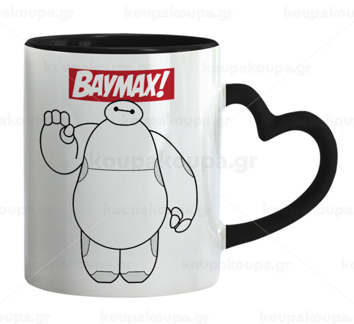 Baymax hi, Mug heart black handle, ceramic, 330ml