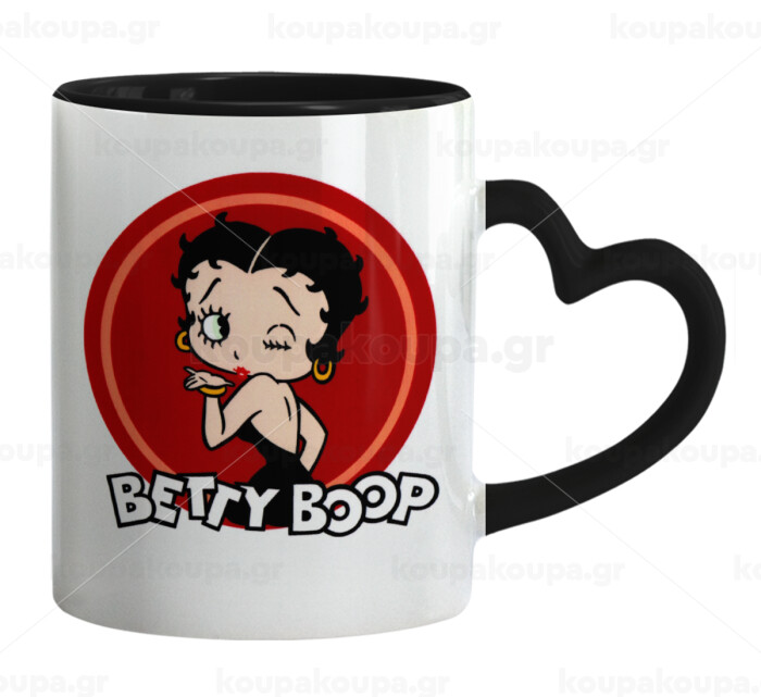 Betty Boop kiss, Mug heart black handle, ceramic, 330ml