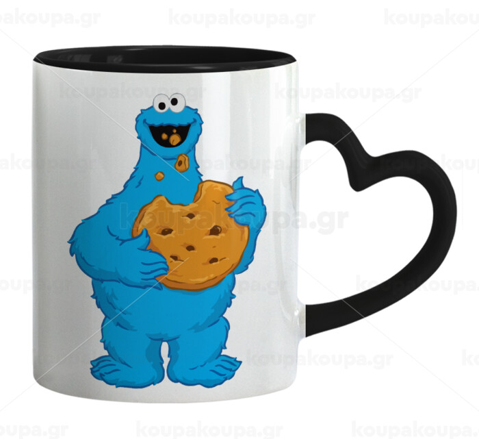 Cookie Monster, Mug heart black handle, ceramic, 330ml
