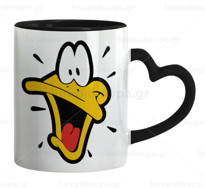Daffy Duck, Mug heart black handle, ceramic, 330ml