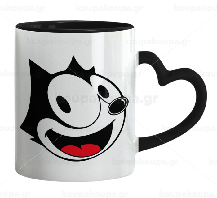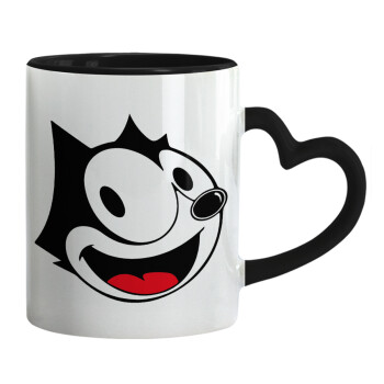 Felix the cat, Mug heart black handle, ceramic, 330ml