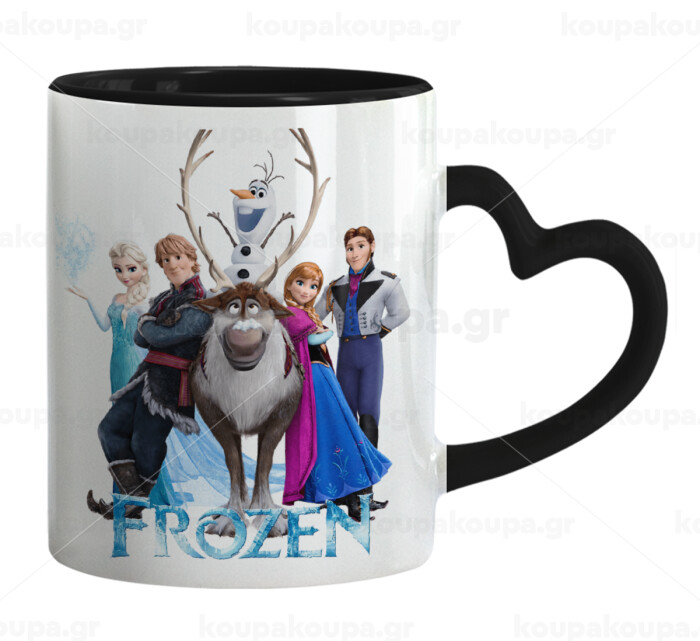Frozen, Mug heart black handle, ceramic, 330ml