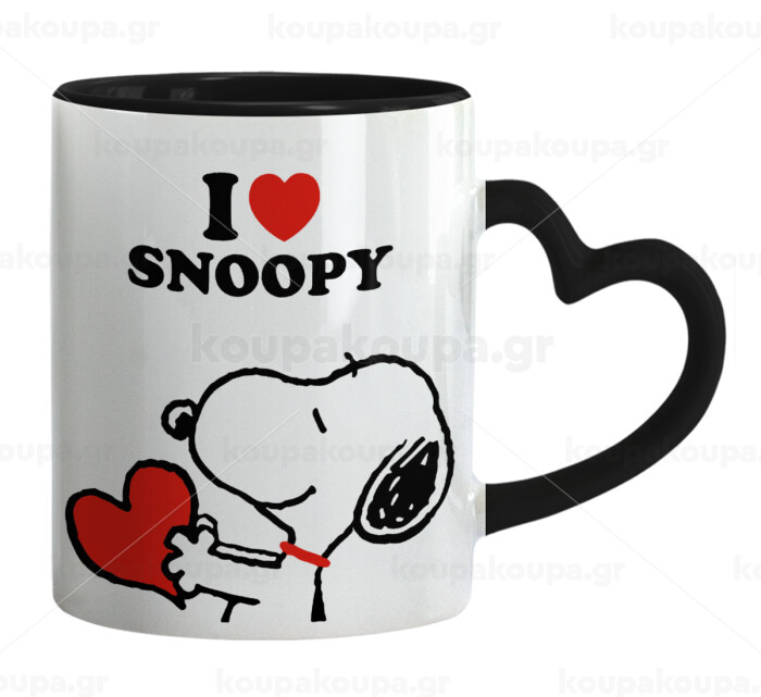 I LOVE SNOOPY, Mug heart black handle, ceramic, 330ml