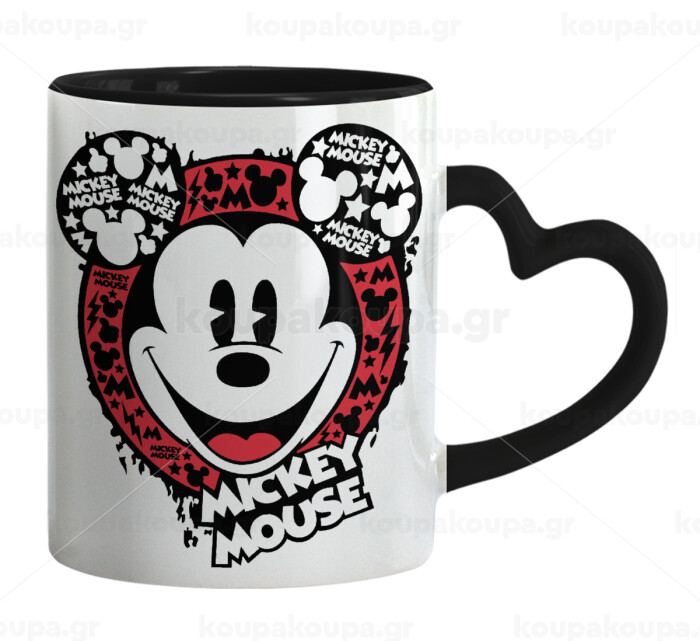 Mickey Mouse, Mug heart black handle, ceramic, 330ml
