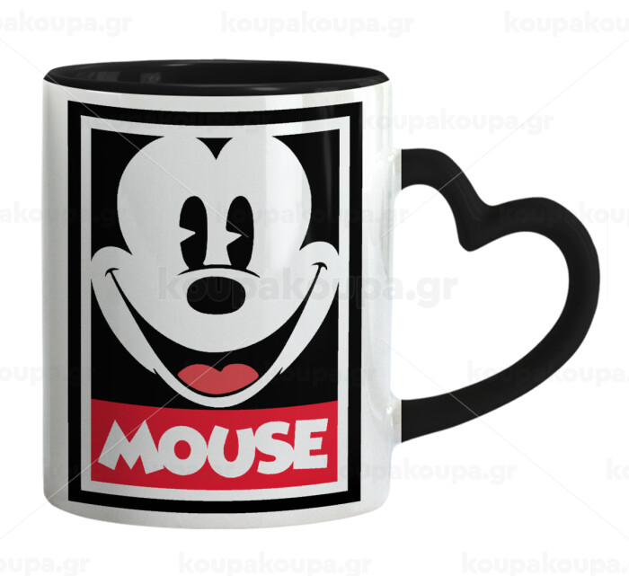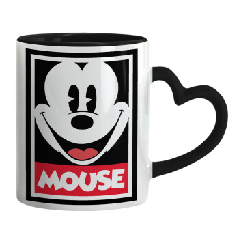 Mickey Mouse, Mug heart black handle, ceramic, 330ml