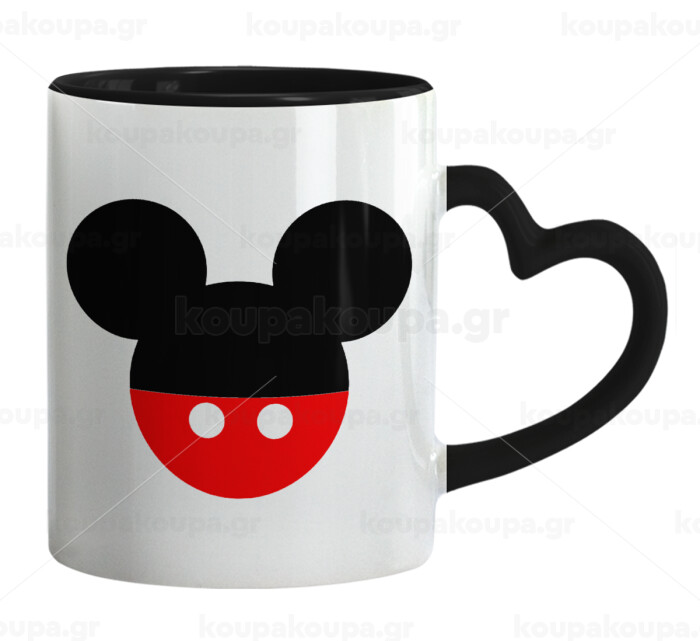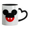 Mickey head, Mug heart black handle, ceramic, 330ml