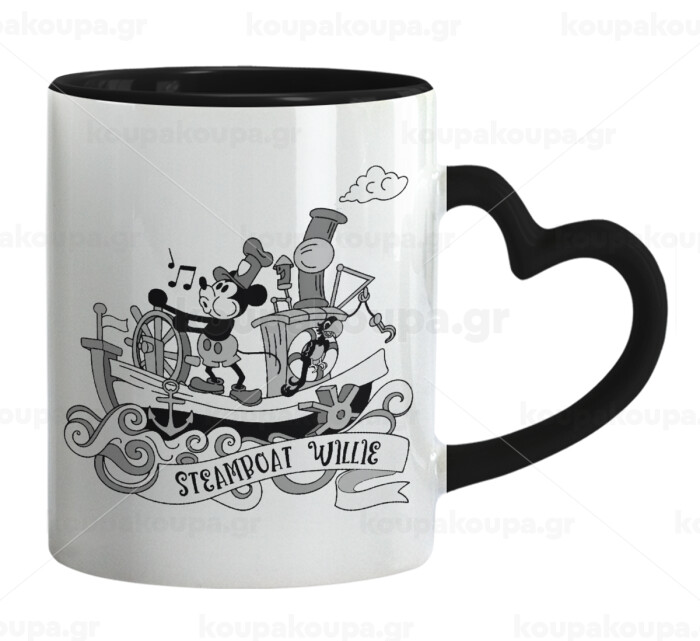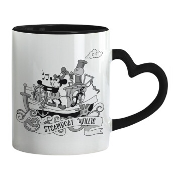 Mickey steamboat, Mug heart black handle, ceramic, 330ml